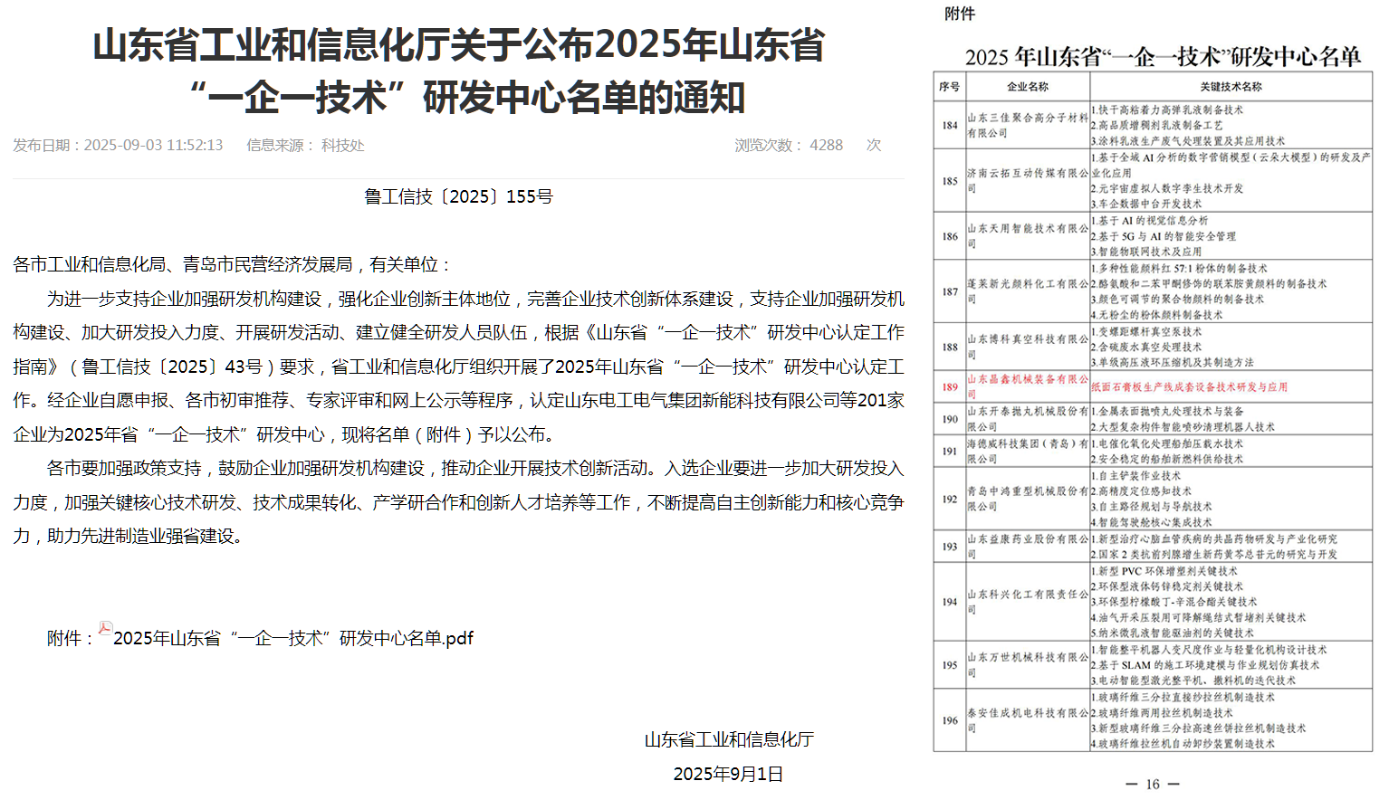 - 山東晶鑫被認定為——2025年山東省“一企一技術(shù)”研發(fā)中心 2025-09-13